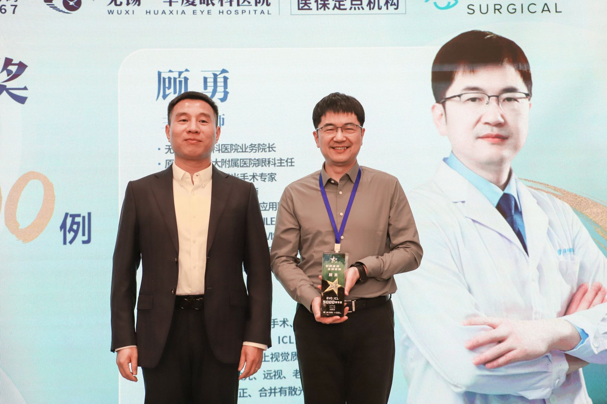 会议特设荣誉时刻,为顾勇院长颁发了 “ICL手术量累例” 荣誉奖杯。这一数字不仅是个人技术的卓越证明,更代表了数千位患者对无锡华厦眼科医院品质与专业的高度信赖。顾勇院长在感言中表示:“每一例手术都是责任。我们将继续以匠心守护每一份清晰视界的嘱托。”